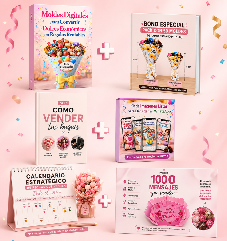 Dentro del método aprenderás cómo crear bouquets hermosos con moldes listos para imprimir y aprovechar cada pedido para generar ingresos de forma simple y constante.